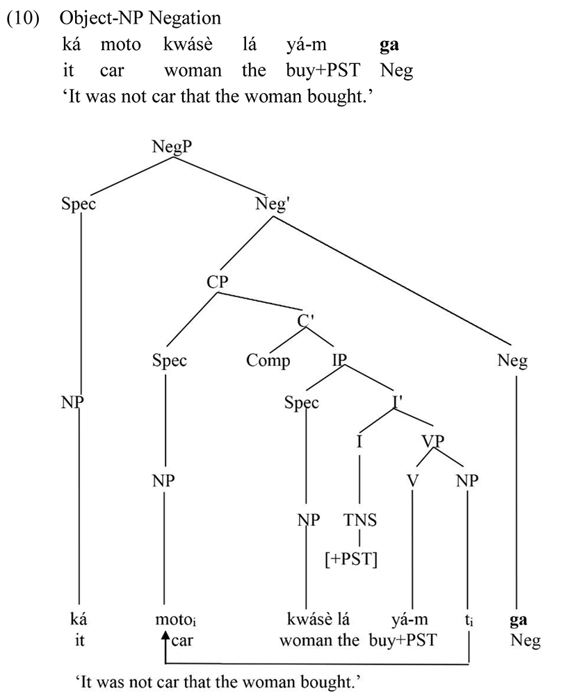 (i) It was discovered that despite the fact that the two languages exhibit SVO word order, they do not conform to the hypothesis that negative markers in SVO languages occur before or immediately after the verb in a given grammatical sentence (Dryer 1988).